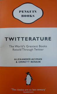 I guess it´s not only me, but I have to confess (sorry for going personal here) that being online all the time has made me even more restless than I used to be. I used to be a heavy reader, but it has become much harder to read all the thick novels I really want to read. A friend must have realized how I was feeling, and bought me "Twitterature. The World´s Greatest Books Retold Through Twitter".