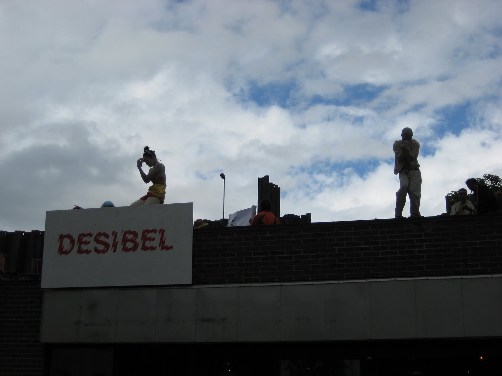 The first day have so far been dominated by Japanese Shibusa Shirazu Orchestra, playing and dancing, and Norwegian performance artist Tori Wrånes, who played accordion and sang beautifully hanging above us all. Nice stunt.