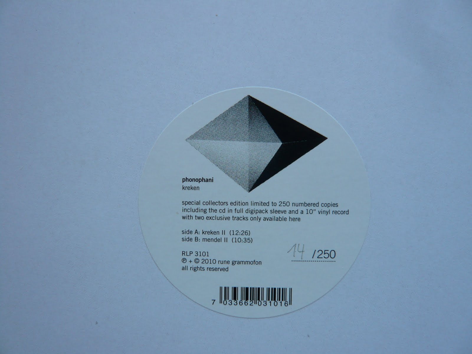 If you are as lucky as me, you just might get hold of the limited editon (250 copies) album, with an extra 10" vinyl with two exclusive tracks ("Kreken II" og "Mendel II").
