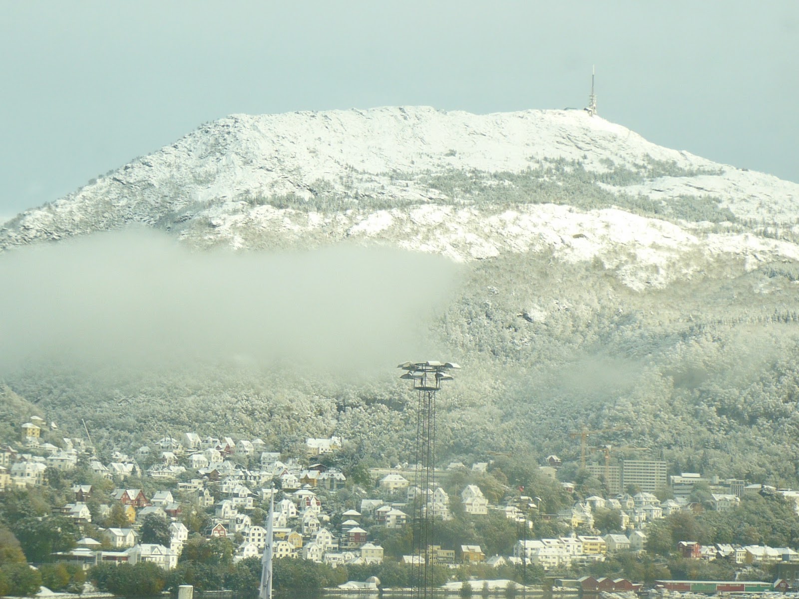 Mount Ulriken (Bergen) covered in snow, 21 October 2010. A bit early, if you want to know how I feel, but here comes winter!