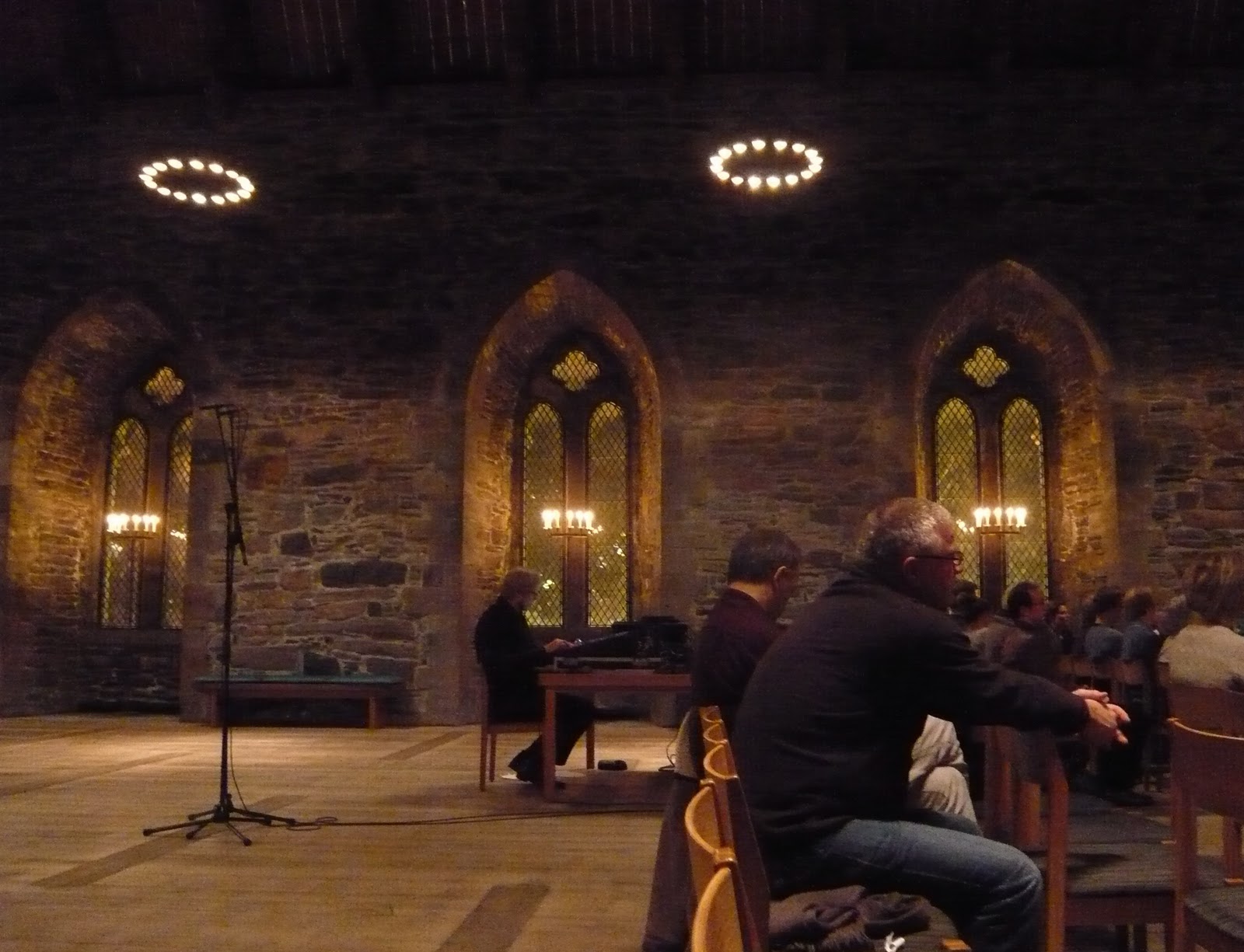 1982 is Nils Økland (fiddles and violins), Sigbjørn Apeland (harmonium, organ) and Øyvind Skarbø (drums). They did a great chamber-folk-improv set under very difficult conditions, the reason being a very loud Salsa course next door!