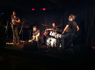 Friday night I heard The Core again in Bergen, playing their up to date, Coltrane inspired jazz. They were super tight and full of energy, and had the audience both concentrating and shouting. You seldom see a member of the audience jump up to shake the pianist´s hand two seconds after his last note played. You should probably think twice before you do that to certain piano players, but The Core´s Erlend Slettevoll seemed OK about it! The rest of the members of The Core are Jørgen Mathisen (sax), Kjetil Møster (sax), Steinar Raknes (bass) and Espen Aalberg (drums).