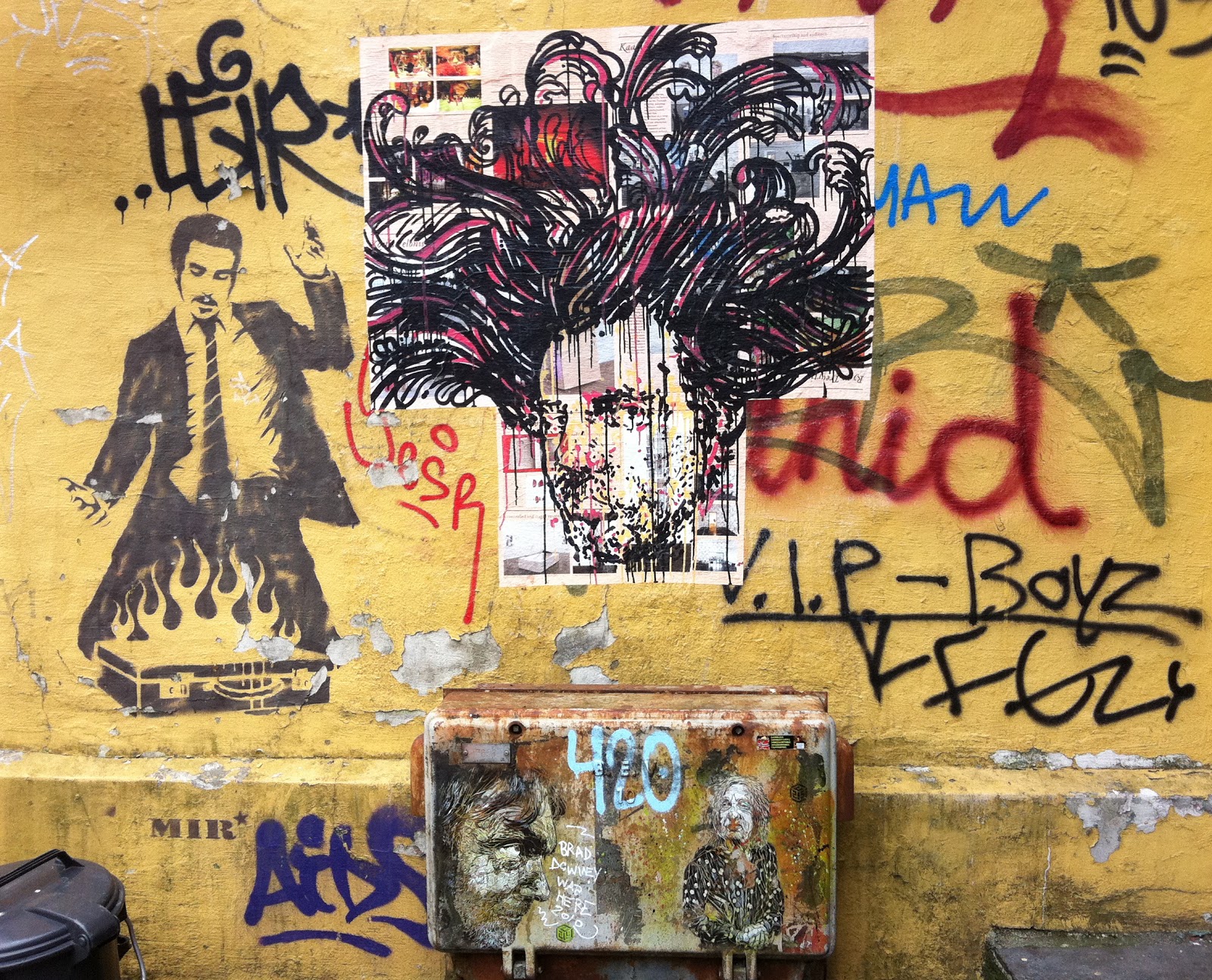 Oh yes, it's illegal and messy, but on this wall in Bergen we have a quite nice collection of street art, made by MIR, C215 (my favorite stencil in Bergen) and the same(?)artist who made this one.