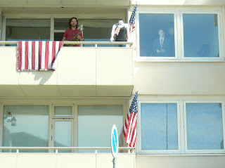 Well of course, buildings and surroundings may influence the musician, and when he played from the balcony of an appartment in the afternoon sun, he chose more standard jazz for his 15 minutes long solo. The appartment owner's american flags and picture of Obama in the window may have played it's part too!
