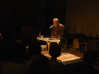 A pretty nervous Evan Parker entered the stage, admitting that he did not feel comfortable speaking in these academic settings. What he did do, was to use his nervousness to illustrate some of the nature of improvisation, when he lost track of his own manuscript. His talk was on composition and/or improvisation, and the correct title in the program should have been "Semantic confusions and their consequences in the discourse on improvisation", not "confusion". Glad to help you all there.