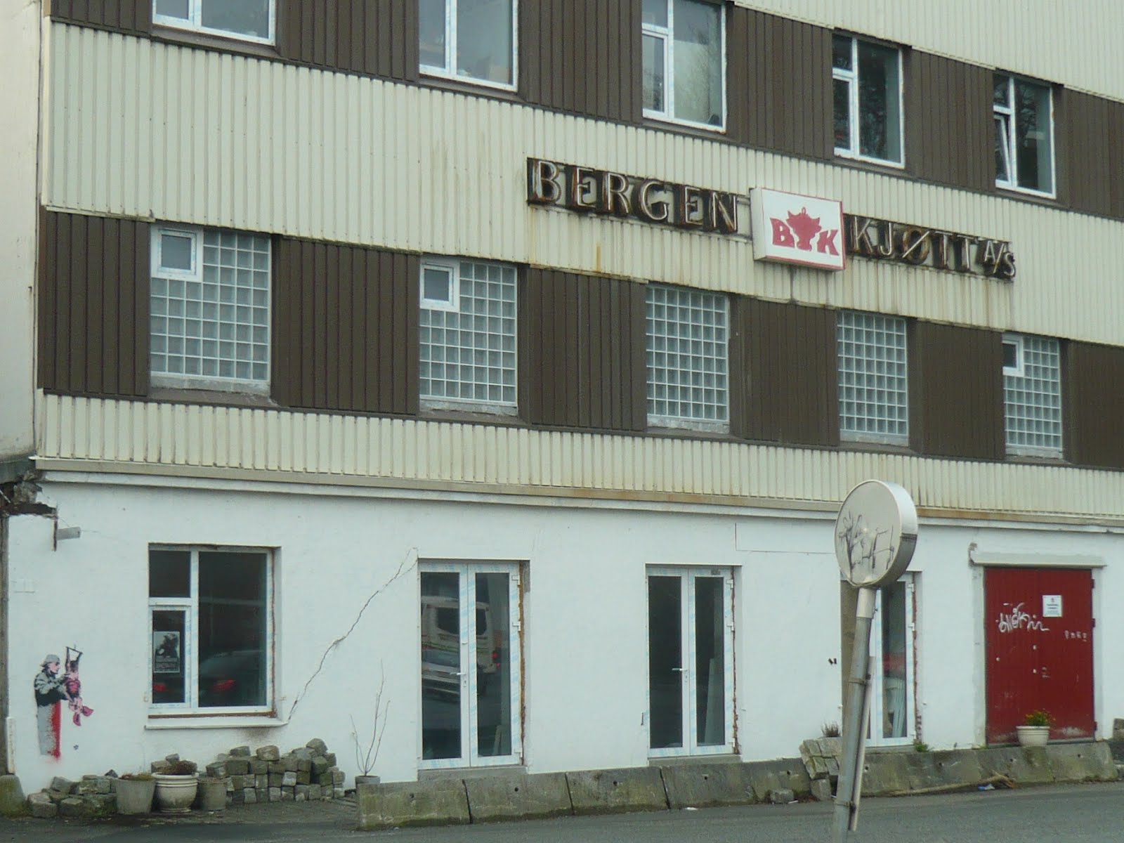 Piglet is slaughtered on the wall of Bergen´s old slaughter house "Bergen Kjøtt" ("Bergen Meat").