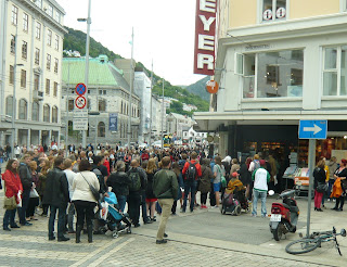 Maja Ratkje´s series of concerts, Voices That Matter, is happening at the Bergen International Festival, and Thursday afternoon people on the main street got a taste of it too, with Phil Mintons "Feral Choir".