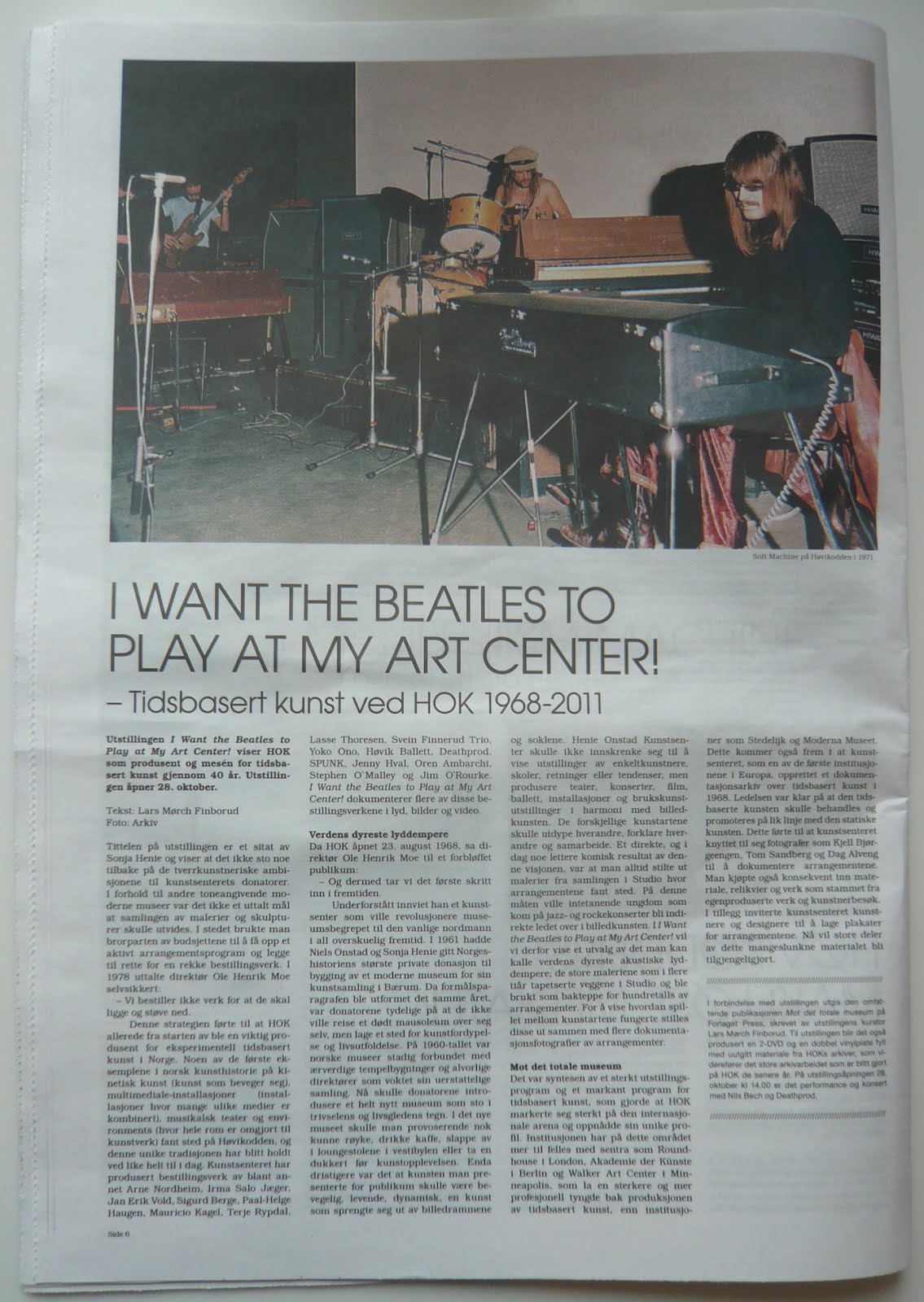 28 October the art center will open the exhibition "I Want the Beatles to Play at my Art Center", something Sonia Henie probably (?)said.